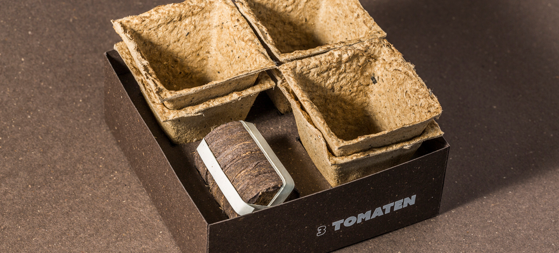 Ein Anzuchtset für alle die genug von faden Supermarkt-Tomaten haben. Drei ausgefallene Tomatensorten, Quellerde und kompostierbare Anzuchttöpfe. Außerdem eine schlichte Anleitung für Gärtner-Neulinge.