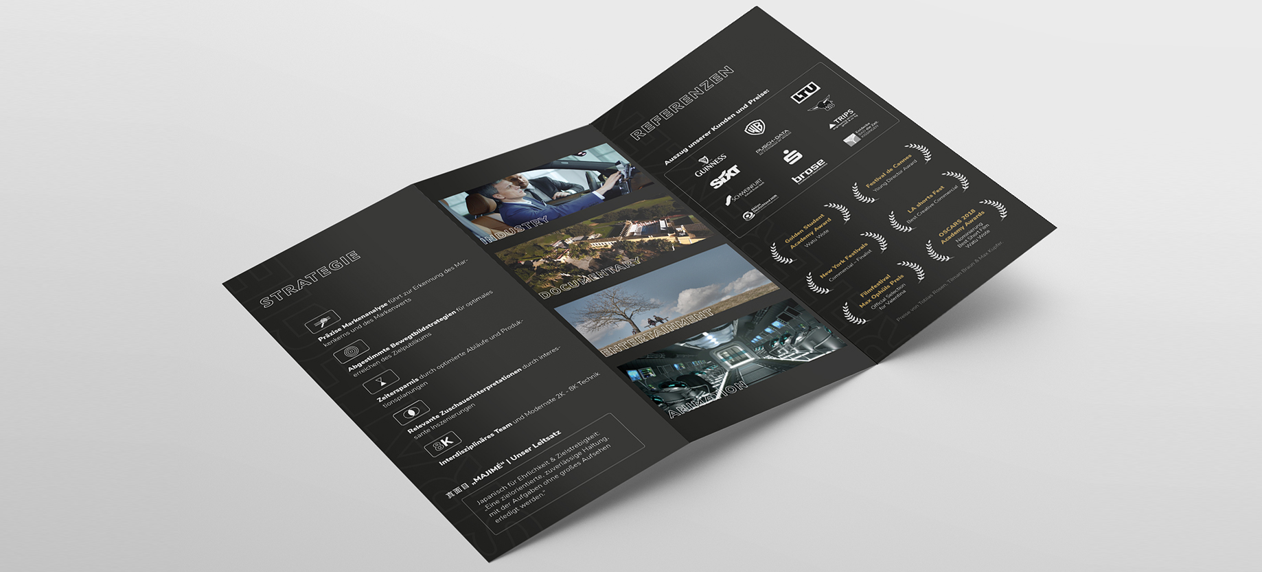 Weitere Printmedien bestehend aus einem Faltblatt für majime films sowie einer geschäftsmappe