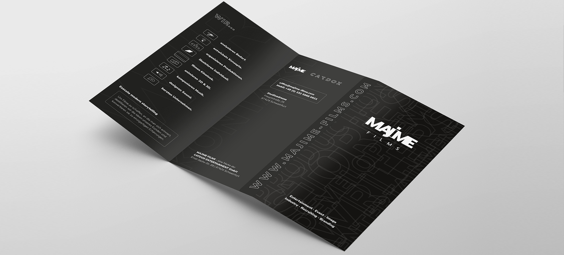 Weitere Printmedien bestehend aus einem Faltblatt für majime films sowie einer geschäftsmappe